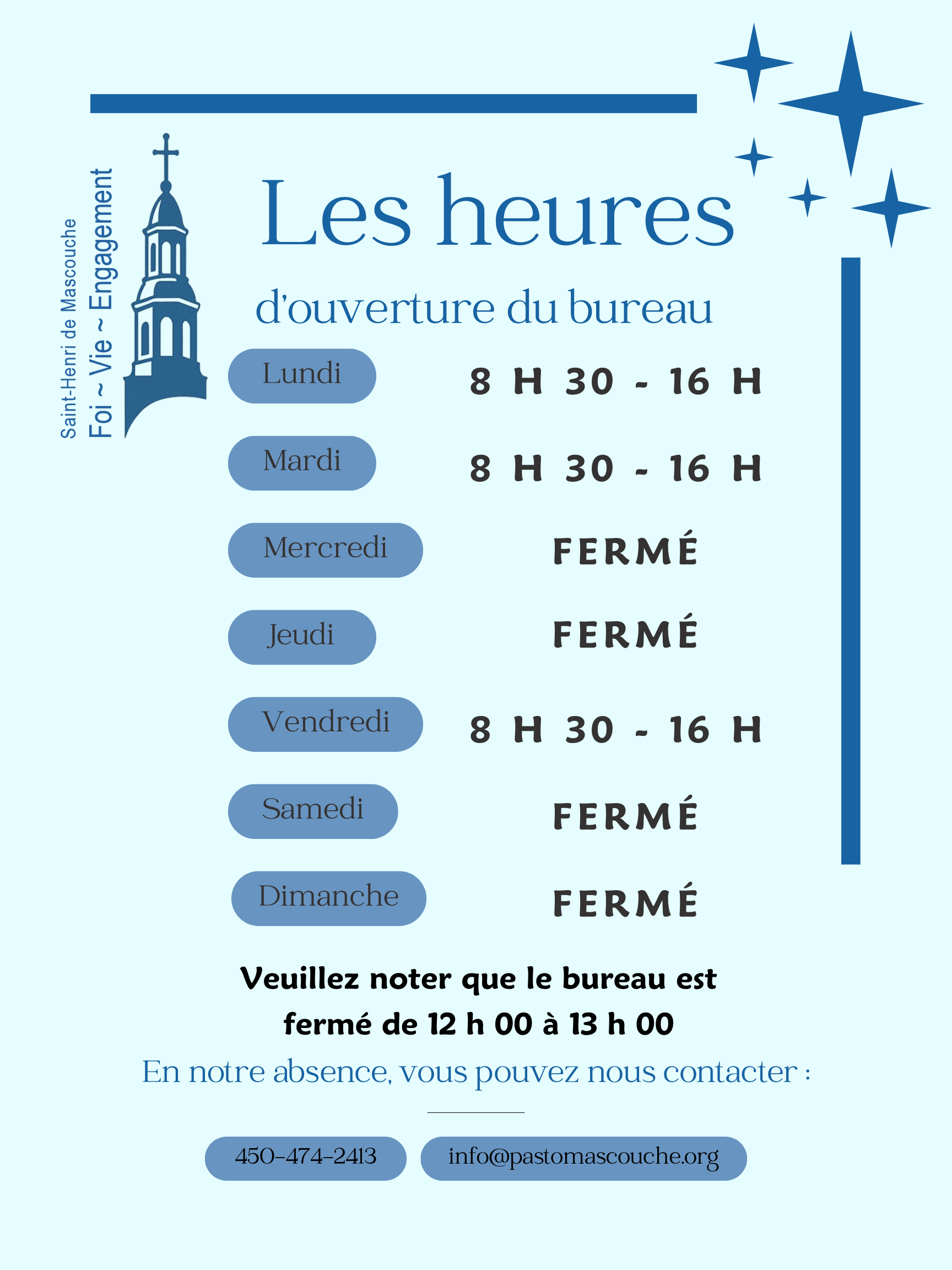 Nouvelles heures d’ouverture des bureaux